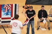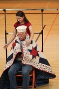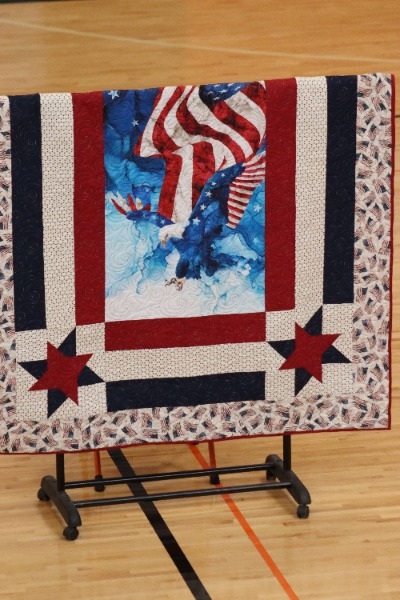 community service. The inspiring conclusion of the ceremony saw local veteran (and Diller- Odell bus driver) Bill Behrends being presented with a ‘Quilt of Valor’. Mrs. Rebecca Zaboktrsky (a member of the local ‘Quilts of Valor’ organization) explained to the crowd how the ‘Quilts of Valor’ was an inspiration of a mother, whose son was