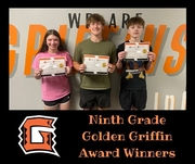 Spring testing is wrapping up. We have chosen to award 3 students in each class with "Golden Griffin" awards for their testing efforts. Students are recognized as a Golden Griffin by: