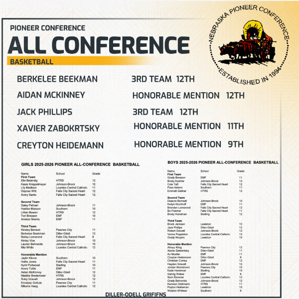 Congratulations to all the Pioneer Conference basketball players who made All-Conference Teams. A special congrats to Griffin's Berkelee Beekman-3rd team, Aidan McKinney-Honorable Mention, Jack Phillips-3rd team, Xavier Zabokrtsky/Creyton . . .